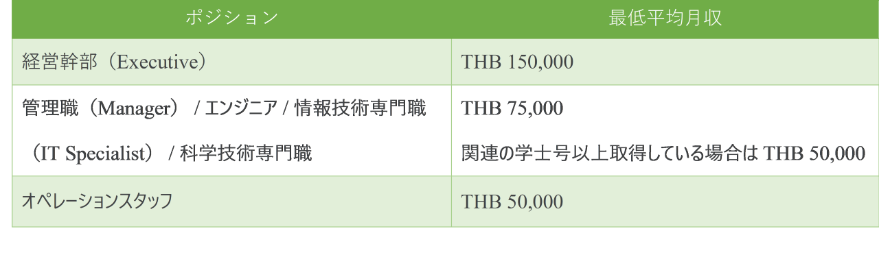 【タイ】BOI恩典下で就労する外国人の給与額規定について