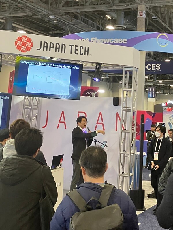 今年1月に米ラスベガスで開催された世界最大級のテクノロジー見本市「CES2026」に出展、世界初となるスマホのバッテリー残量予測システム「スマホの御守」を発表した(写真)。ブースでは製品紹介と実機を使ったデモンストレーションを行い、来場者に「バッテリー切れがない未来」を体験してもらった。